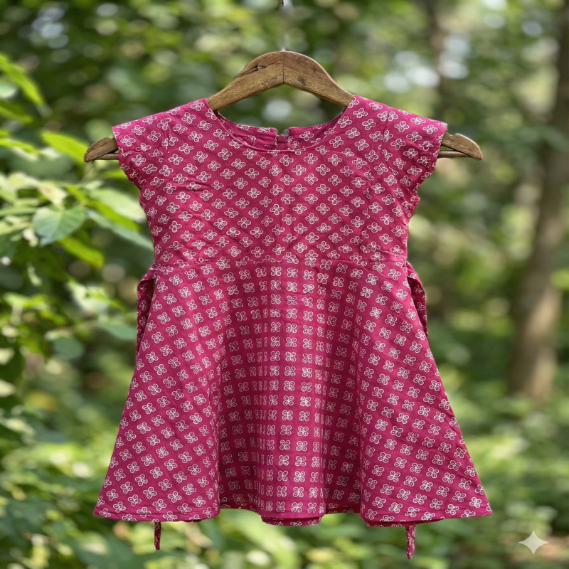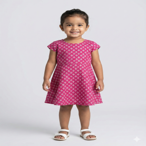 The charming print and lightweight design give a playful and trendy look. Perfect for daily wear, outings, and special occasions, this dress is designed to provide both comfort and style for your baby girl.