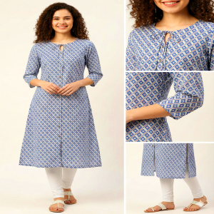 Upgrade your everyday wardrobe with this stylish blue ethnic printed kurti from Saffaly. Made from soft and breathable cotton fabric, this kurti ensures all-day comfort while keeping you effortlessly stylish.