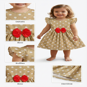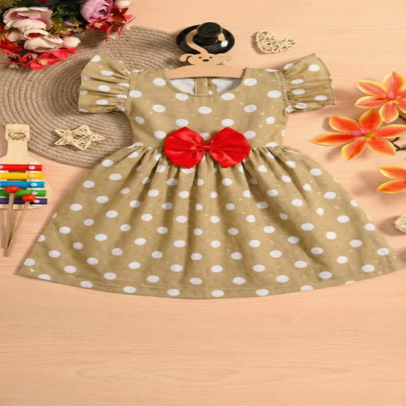 The cute polka dot print and elegant fit & flare design give a charming and playful look. The eye-catching red bow adds extra style, making it perfect for birthdays, parties, and special occasions. Designed with comfort and movement in mind, this frock is ideal for both casual wear and festive moments.