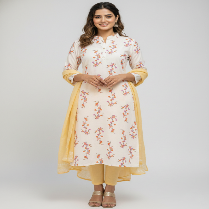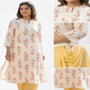 The subtle floral print adds a fresh and graceful touch, making it perfect for office wear, casual outings, and daily use. The 3/4 sleeves and straight fit design ensure a comfortable and flattering look for every woman.